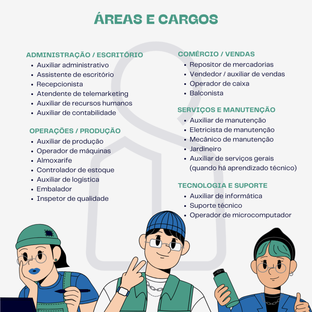 Veja alguns exemplos comuns de cargos que entram no cálculo da cota de aprendizes:
